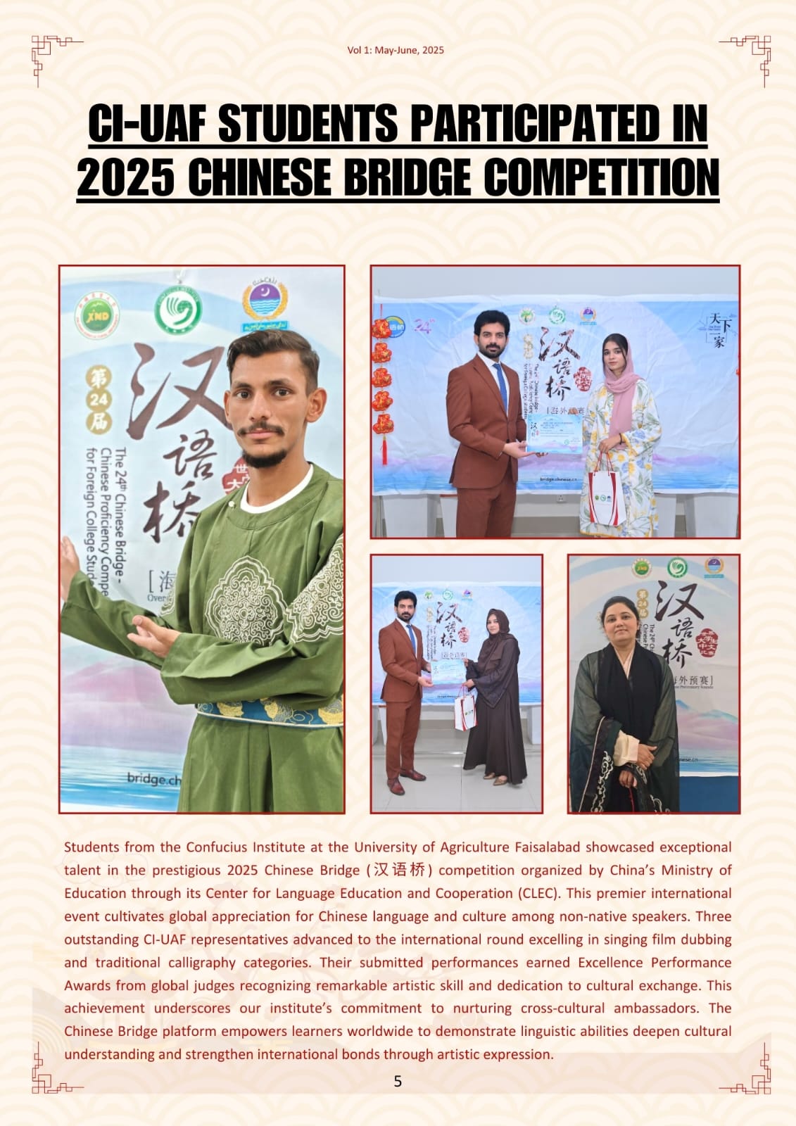 Over the past decade, our collaborative efforts have led to remarkable achievements. We are proud to be recognized as one of the top 100 model Confucius Institutes worldwide and as a leading center for international Chinese proficiency testing. With six sub-branches established across Pakistan, we have successfully trained over 21,000 individuals in the Chinese language and supported nearly 500 students with scholarships to study in China. Our vibrant cultural programs have engaged more than 51,000 participants, fostering deep mutual understanding and friendship between our nations. Additionally, we have conducted 118 Chinese proficiency tests with nearly 10,000 local participants, further promoting language skills in the community.